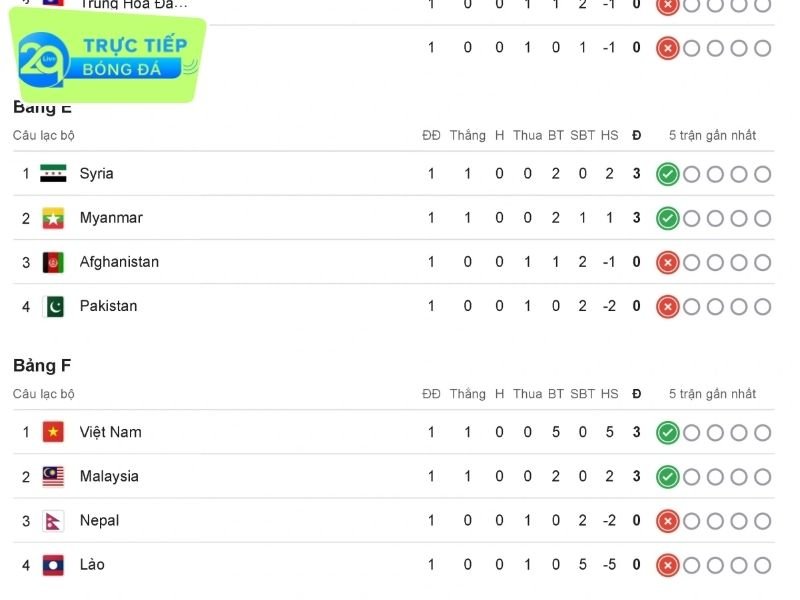 Bảng F đã chứng kiến màn trình diễn ấn tượng của tuyển Việt Nam khi đánh bại Lào với tỷ số 5-0, qua đó khẳng định vị thế dẫn đầu bảng. Kết quả này không chỉ giúp Việt Nam có được 3 điểm quý giá mà còn tạo ra hiệu số bàn thắng ấn tượng.